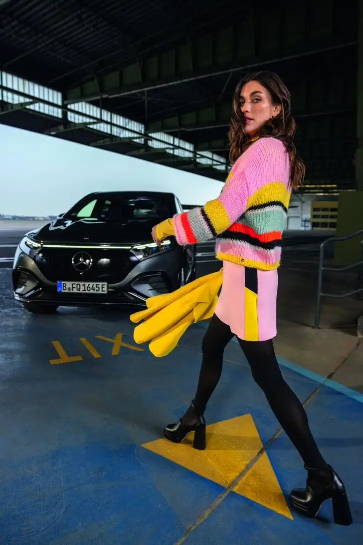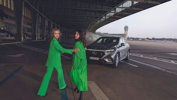 Bij de gezamenlijke shoot van Marc Cain en Mercedes-Benz showden moeder en dochter de nieuwste collectiehoogtepunten van het Duitse premiumlabel voor de herfst/winter 2023: uitgebreide knitwear 'Knitted in Germany'. De collectie bevat vloeiend satijn en powersuits in allerlei gedurfde tinten.
