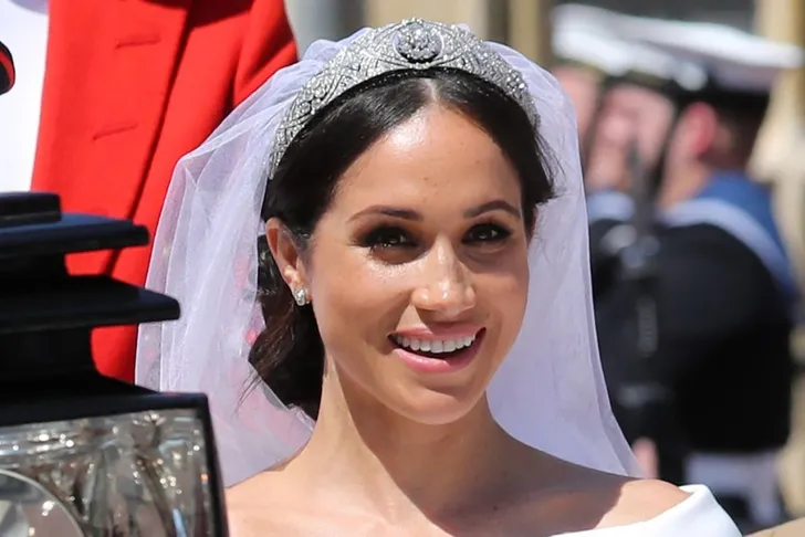 Na de tiara van Kate, kunnen we natuurlijk ook niet de prachtige tiara vergeten die haar schoonzus Meghan Markle droeg op haar bruiloft. En net als de Cambridge Lover's Knot Tiara, is ook deze tiara gemaakt door koningin Mary. Enne, het mag nu ook wel duidelijk zijn dat de wijlen koningin van bling hield. Deze sprankelende tiara bevat grote en kleine diamanten én een afneembare broche in het midden. O ja, en die broche bestaat toevallig ook nog uit negen schitterende briljanten, rond een forse diamant. Extra is het nieuwe normaal, toch? Ook deze tiara schonk Mary aan koningin Elizabeth II, die hem op haar beurt weer uitleende aan Meghan Markle op haar trouwdag.