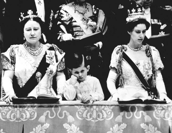 Zo'n kroningsceremonie staat natuurlijk bol van de pomp and circumstance. En dat maakt het (met alle respect) toch best een beetje een langdradige gebeurtenis. Zelfs de piepjonge prins Charles kon z'n gezicht moeilijk in de plooi houden: