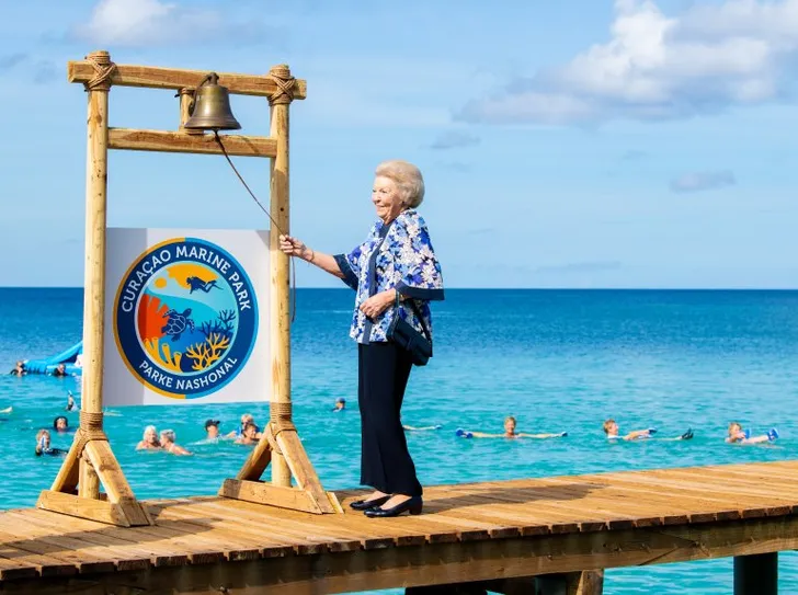Maar ook nadat ze haar titel van koningin overdroeg aan zoonlief Willem-Alexander, bezocht prinses Beatrix het kleurrijke Curaçao. Hier zien we een stralende Bea bij de heropening van het Curaçao Marine Park. Het is overduidelijk dat de royal zich thuis voelt op de Nederlandse Antillen.