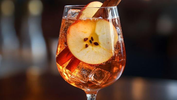 Zo ga je te werk: Dip de randen van je glazen eerst in een beetje water of citroensap, en haal vervolgens door de kaneelsuiker. Vul vervolgens met wat ijs, de appelcider, Aperol en prosecco bij. Maak af met een scheutje bruiswater, en decoreer met een schijfje appel.