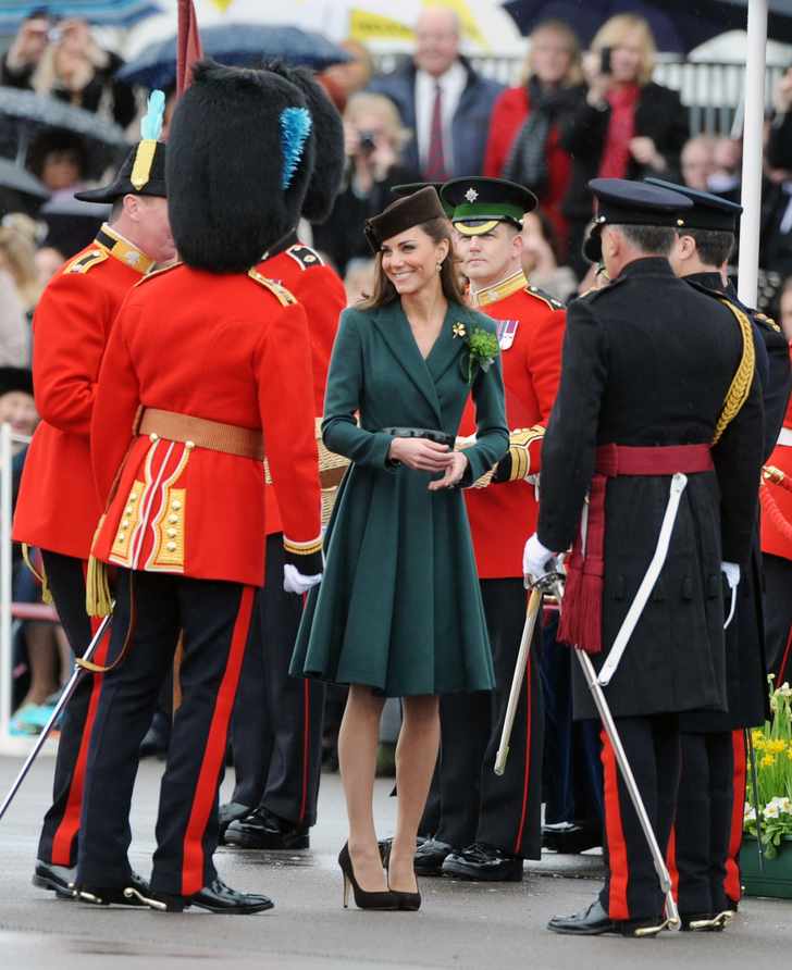 Kate is daarom morgen natuurlijk van de partij bij de traditionele viering van St. Patrick's Day bij de Irish Guard. Dit gaat gepaard met veel traditioneel militair vertoon (marcheren, een koninklijke inspectie, etc.) en het uitdelen van de iconische klavers aan de aanwezigen. Maar ook voordat zij officieel deze titel droeg, was Kate vaste gast bij de jaarlijkse shamrock-ceremonie. Wij blikken terug op een aantal van haar mooiste looks!