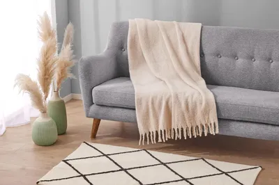 Oké, nu komt het ultra‑knusse deel. Wie heeft er geen lievelings‑plaid die je na een lange dag om je heen wilt slaan? Een dikke plaid (bijvoorbeeld in bouclé‑stijl zoals te vinden bij Lidl) gecombineerd met zachte kussens in verschillende texturen (denk aan velours, fluweel of wol) maakt je bank uitnodigend. Door meerdere kussens in verschillende groottes en materialen te gebruiken, creëer je sfeer én comfort. Vergeet ook de voetenbank of poef niet – ideaal om je benen eens goed te strekken en te genieten van en kop thee of glas wijn.