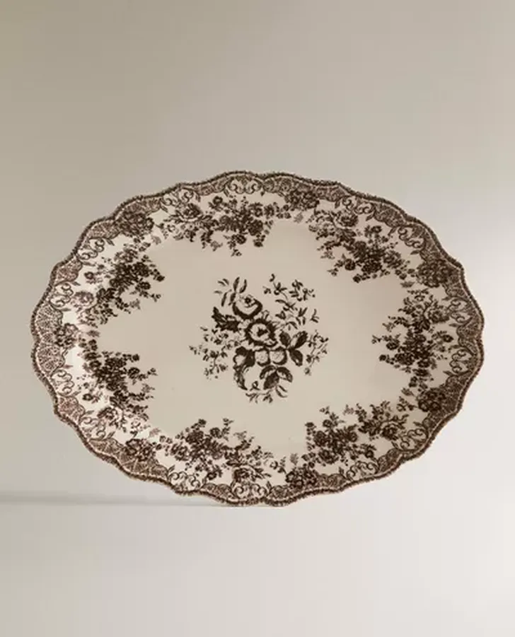 Maar Zara Home grijpt die nostalgie op een slimme manier. Hun nieuwste collectie lijkt duidelijk op de stijl van La Cartuja, maar is net wat eenvoudiger en frisser. Geen drukke prints, wel subtiele tekeningen van bladeren en bloemen. Tijdloos, elegant en ideaal voor de feestdagen.