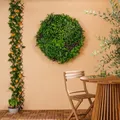 Maak je buitenruimte helemaal af met een vleugje verticaal groen. Deze ronde kunsthaag in een chique goudkleurige lijst is de ultieme blikvanger. Het geeft je muur een weelderige, natuurlijke look die bovendien UV- en weerbestendig is. Hang hem op en voilà: instant allure voor slechts €49,95.